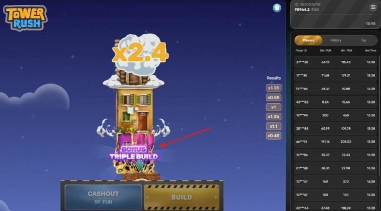Tower Rush w 60 sekund Gra: stawiasz bloki, budujesz wieżę, mnożnik rośnie.Kontrola: wypłacasz kiedy TY chcesz.Bonusy: trzy mechaniki zmieniające grę —…